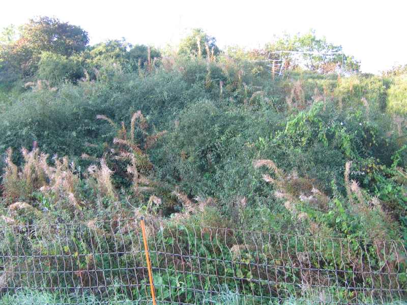 Und das letzte für heute. Einer der Ausgänge des mutmaßlichen Dachsbaus. Die Variante: Schlehengebüsch als natürliche Grenze plus Litze hat zumindest letzte Nacht schon mal funktioniert. Da, wo die Litze über Kreuz geht, konnte "das Tier" letzte Nacht durchschlüpfen. Die Skudden werden derzeit hauptsächlich durch den Bewuchs aufgehalten. Sie müssten da durch um an die Litze zu kommen. Das werden sie eher nicht tun. Es ist genug zu fressen auf der Fläche und meine Skudden sind ja ortstreu. Nicht täuschen lassen... von dieser Seite ist keine Schlehe zu sehen. Aber an allen Seiten, an denen die Schafe ran kommen, ist es wehrhafte Schlehe.
