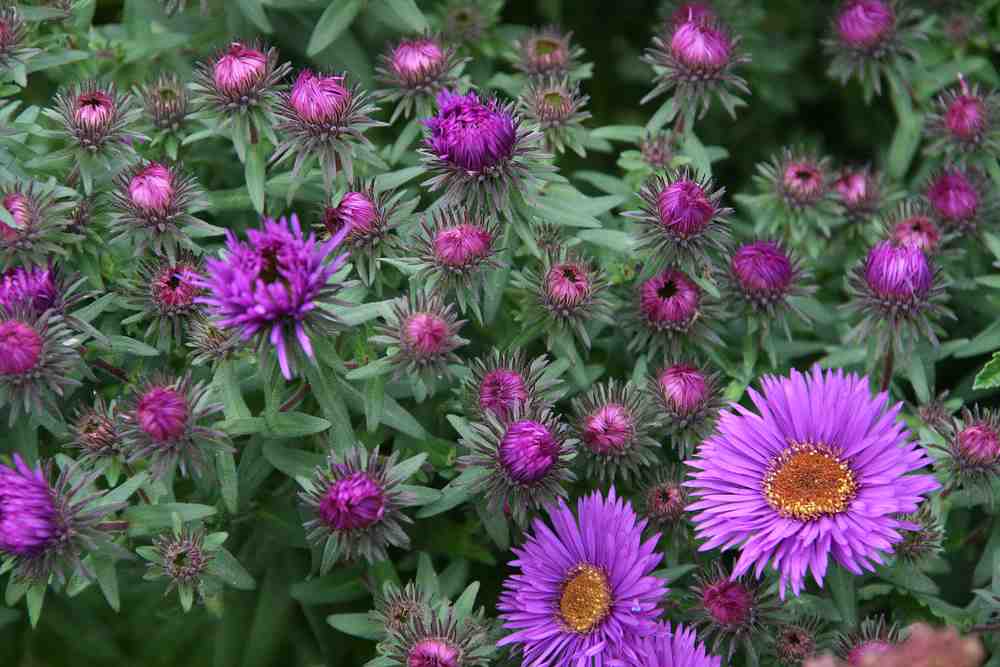 Da sieht man 3 verschiedene Herbstastern und die weiße Herbstanemone.lg elis