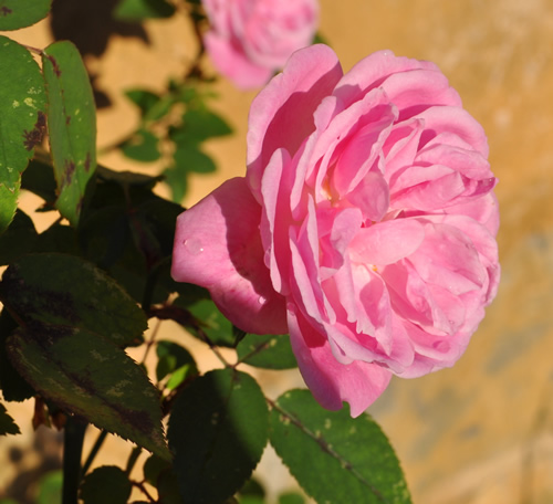 Weiter auf dem Rückweg.Unterwegs eine ganz alte Rose, sagte man uns, die in dieser Gegend öfters vorkomme. (Was unter ganz alt zu verstehen ist, konnten wir sowenig heraus finden, wie der Name der Rose):