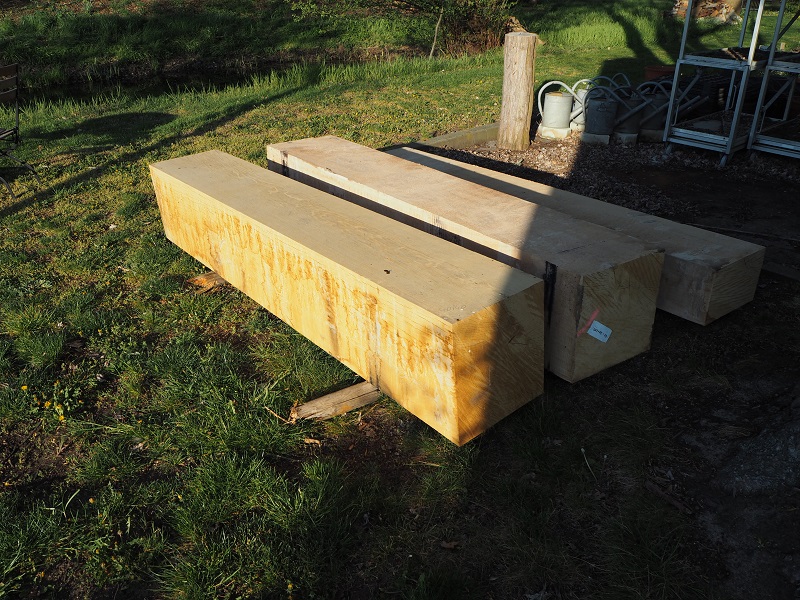 Die ersten sind zurück. Ein Nachbar, der Zimmermann ist, wird die Enden gerade abschneiden und die Kanten rund fräsen. Das kann allerdings etwas dauern. ;D