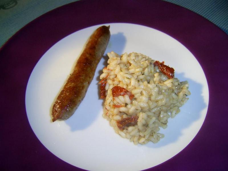 Und nochmal zurück: Am Montag hatten wir Penne all'arrabbiata und am Dienstag Kalbsbratwurst und Risotto mit getrockneten Tomaten.lg, borragine