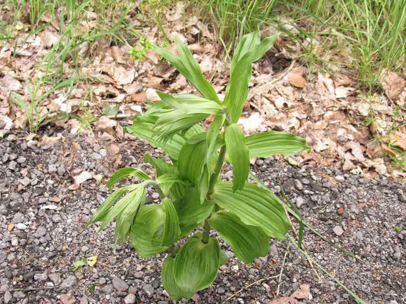 Nicht weit davon stand mitten auf einem mit Asphaltsplitt befestigtem Weg diese Pflanze. Ist das wirklich ein Veratrum?
