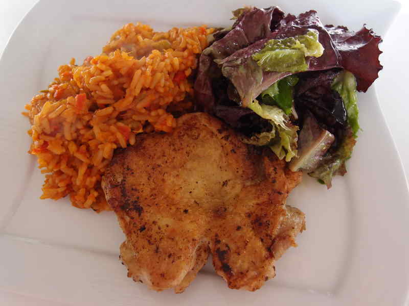 ; dazu gibt es jetzt Feierabend-Rosé.Heute mittag gab es in der Metropole nur ein Tom-Ka-Gai-Süppchen, aber frisch zubereitet, sehr lecker und scharf. Endlich habe ich einen halbwegs authentischen Thai gefunden