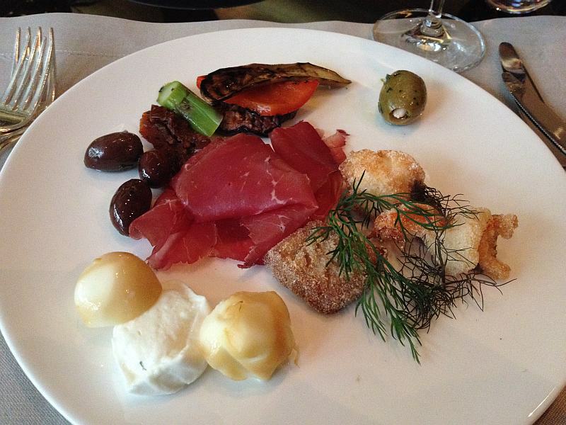 dann mussten wir uns aus allerlei auf den riesentisch gestellten schälchen unsere antipasti zusammenkramen...