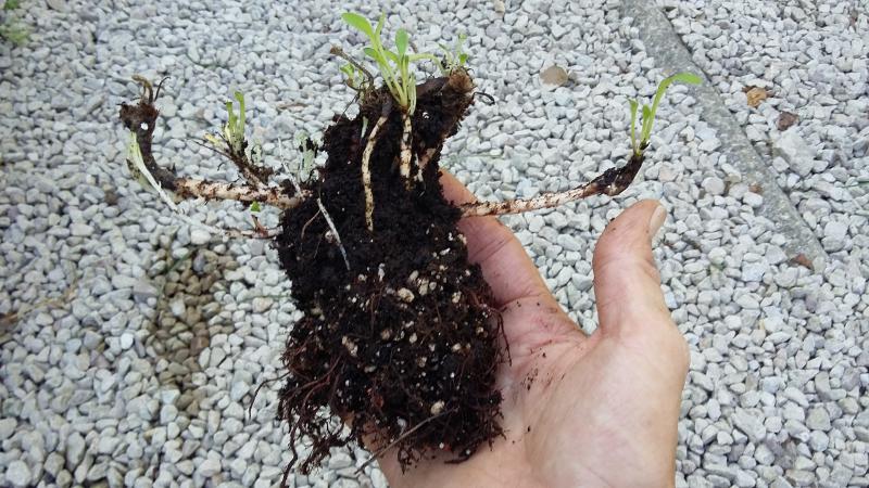 Dieses Wurzelstück habe ich eben im Gewächshaus unter einem Gewucher entdeckt. Sollte wohl entsorgt werden und geriet in Vergessenheit. Ich kann es höchstens aus Versehen gegossen haben.