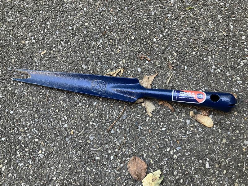 Der ist bei mir immer dabei. Ich benutze ihm als Unkrautstecher, und wenn ich keine Schere dabei habe, dann schneide ich auch mit ihm ab. Auch als kleine Schaufel ist er in schweren Boden sehr stabil und robust. Früher habe ich eine Handschaufel wie Andreas gehabt, dem habe ich verbogen ;D