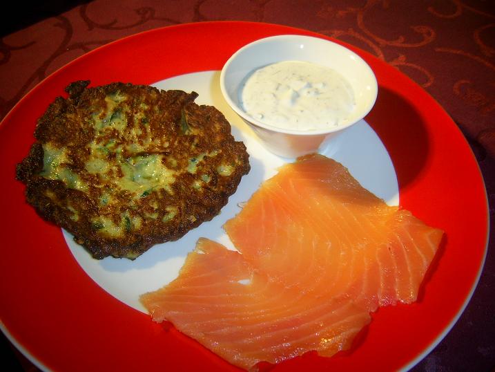 Am Sonntag gab es Zucchinipuffer mit Lachs und Kräuterschmand.Und gestern gab es auf einem Geburtstag ein Buffet mit diversen Nudelsalaten, verschiednen Hackbällchen, Feldsalat mit gebratenen Speckwürfeln und reichlich Käse und Baguette.