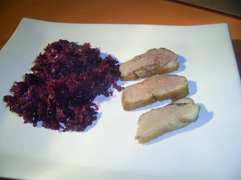 Wir hatten am Dienstag Entenbrustfilet und Rotkraut.