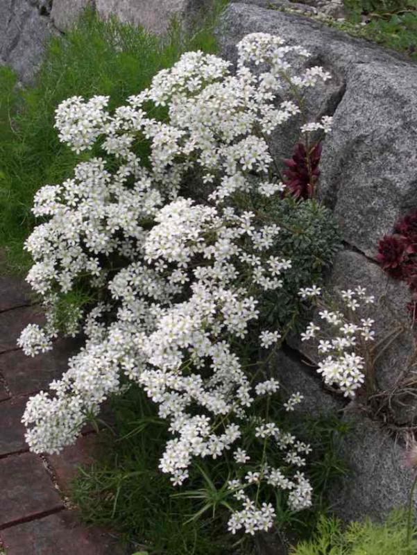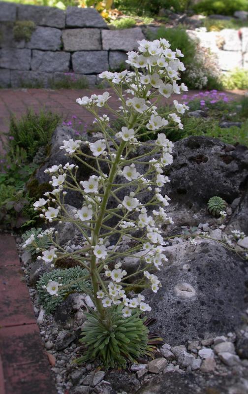 Eine der vielen blühfreudigen Silberblatt-Saxifragen in der Trockenmauer
