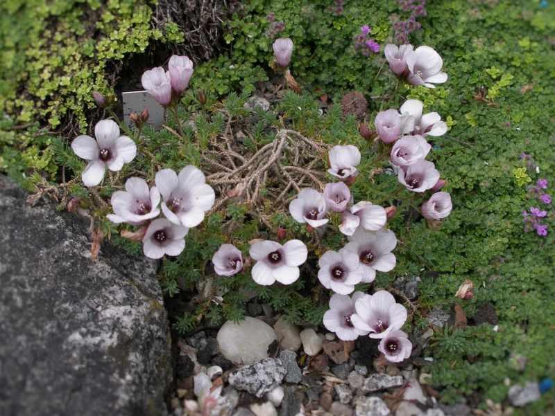 Salvia quezelii, eine niedrige Salvia, endemisch vorkommend im karstplateau taseli in der südl. türkei. sie steht zwar nicht im kalksplitt, aber scheint hier auch im ziegelsplitt gut zurecht zu kommen. im gegensatz zur ähnlichen Salvia caespitosa blüht sie auch im garten willig ohne irgendwelchen schutzmaßnahmen. letztes jahr konnte ich einige samen ernten, gekeimt haben heuer aber nur 2, die ebenfalls schon ausgepflanzt sind + sehr gut weiter wachsen.