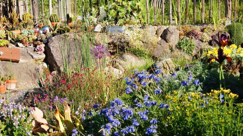 Hier blüht Incarvillea zhongdianensis - tolle Fernwirkung, aber aus der Nähe fast erschlagend