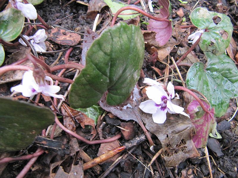 Danke, ja, du hattest das bei einem von mir gezeigten Foto auch schon vermutet. Hier trifft es aber vorwiegend die C. coum, C. hederifolium kaum und C. purpurascens gar nicht.Ich vermute, dass es Eulenraupen sind. Bei mir sind praktisch alle Cyclamen arg angefressen. Hier ein neuer Versuch, eine Blüte abzulichten.