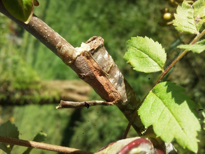 Meine Veredelungen wachsen fast alle sehr gut. Eine Mispel auf Eberesche hat sogar eine Frucht angesetzt