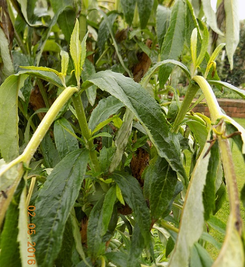 Beim Sommerflieder sind die obersten Austriebe erfroren. Clematis hat es auch erwischt, die Triebspitzen abgeknickt und schlaff. Bei vielen Rosen sind frische Austriebe erfroren. Thalictrum hat auch Schäden davon getragen. Sogar Bärlauch lag geplättet am Boden, richtete sich aber wieder auf. Herbstanemonen lassen die Blätter hängen und die Tulpen waren alle glasig.