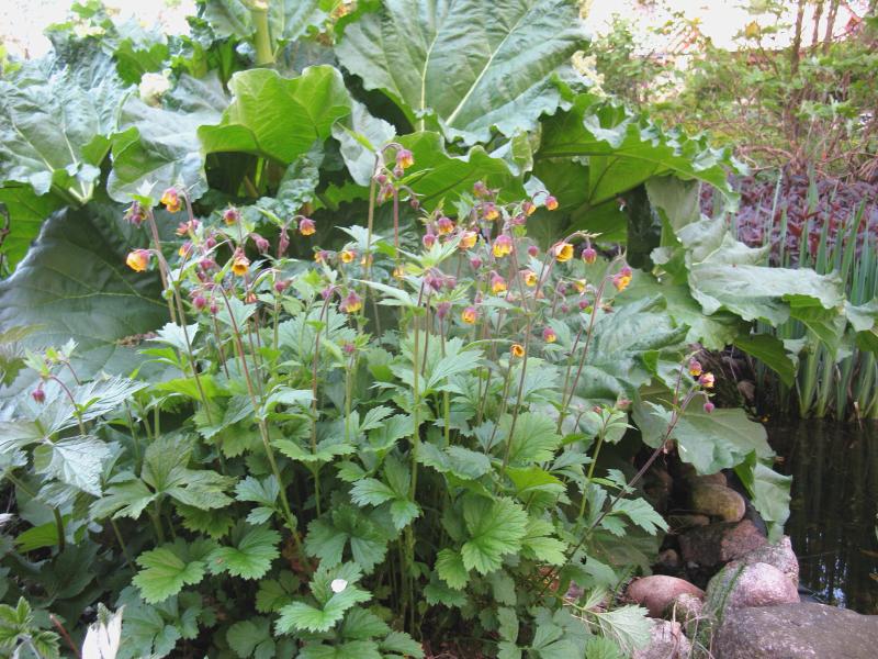 Ein großblütiger Geum rivale-Typ, gut 60 cm hoch und mit reingelben Blüten. da mein Teich undicht zu sein scheint und wir in den letzten Wochen kaum Niederschläge hatten, steht er verhältnismäßig trocken. :-\