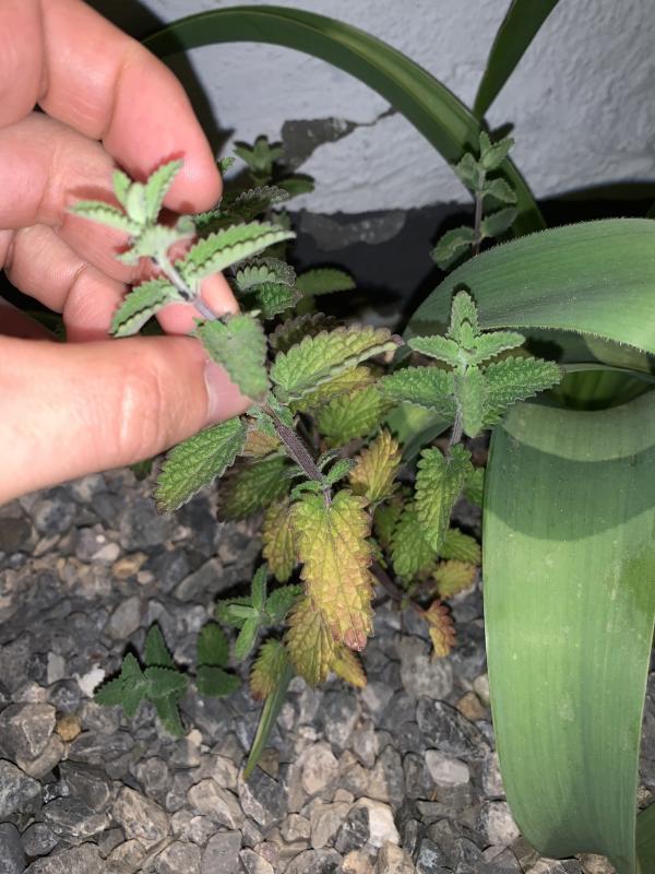 Abgefressen oder plattgewalzt. Dann habe ich mal ein Blättchen zerrieben und daran gerochen: unangenehm muffig für meine Nase.