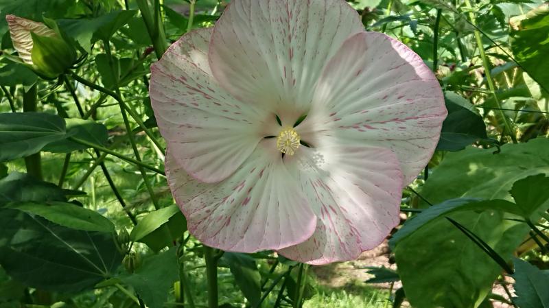 Bei mir blühen noch H. coccineus in weiß und Hibiscus palustris . palustris etwas unspektakulär, sehr gedrungen, es war wohl zu trocken...