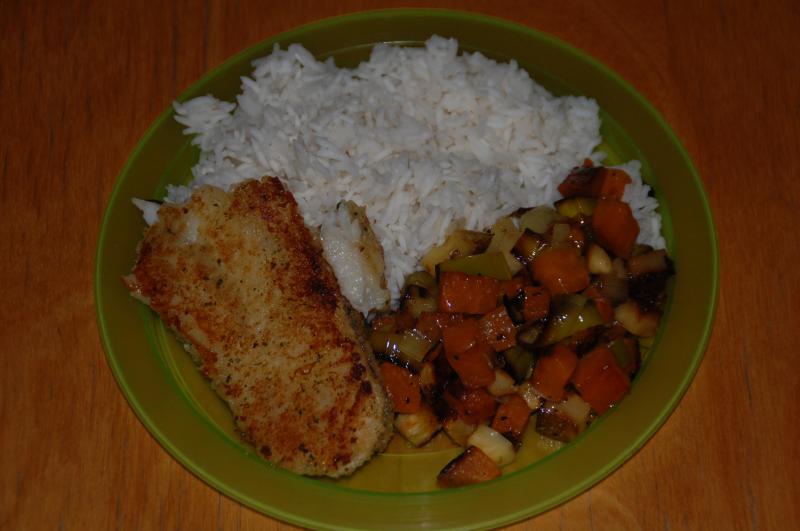 Basmatireis mit Seelachs 'Müllerin Art' und Pastinakensüßkartoffelporree