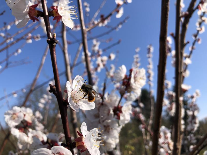 Aprikosenblüten waren attraktiv für Osmia, aber verschiedene Zwetschgenblüten werden nicht besucht.