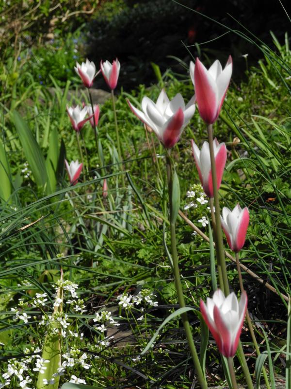 T. clusiana ´Peppermint Stick ´ blüht auch noch -- sehr spärlich dieses Jahr mit nur einer Handvoll Blüten. T. chrysantha var. clusiana scheint verlustig gegangen -- sehr schade, immer ein tolles Gelb.