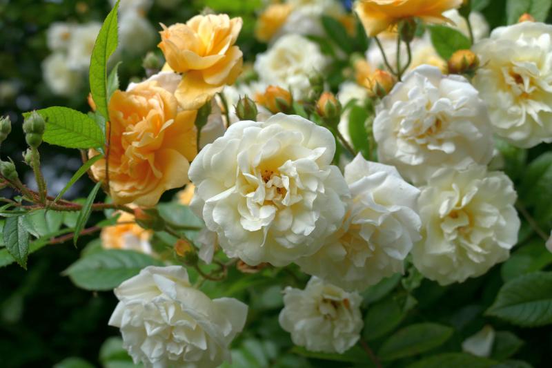 Getrude Jekyll ist ja ein Traum,hier blüht zuerst "Johanna Röpke"