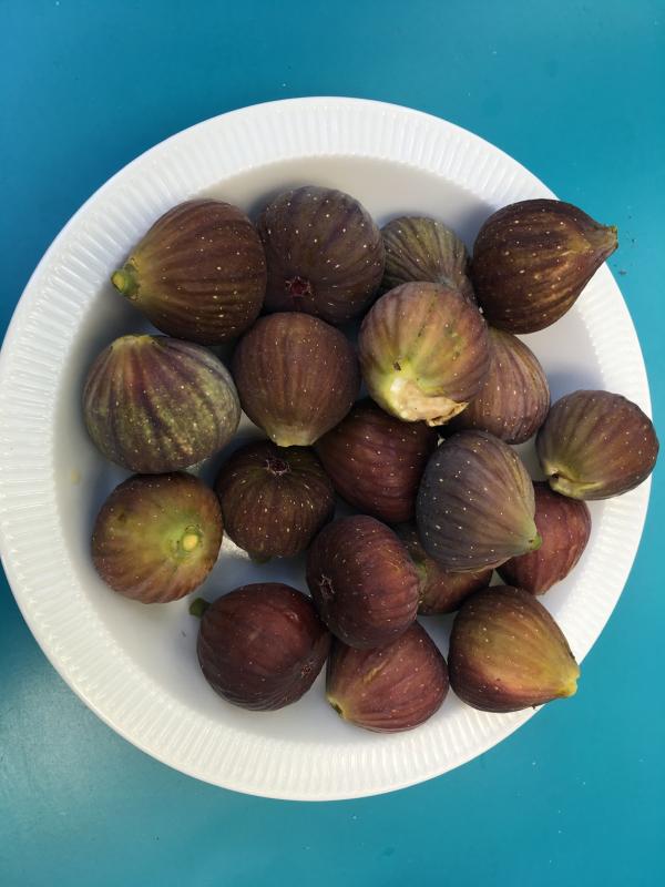 Feigen aus eigener Ernte, Ziegenhartkäse, Brot & Rotwein.