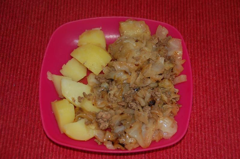 Lieblingsessen - Schmorkohl (Weißkohl, Speck, Hackfleisch, Salz, Pfeffer, Paprikapulver) mit Salzkartoffeln