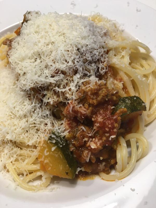 Wir hatten heute Spaghetti Bolognese mit Tk-Garten-Sommerzucchini :)