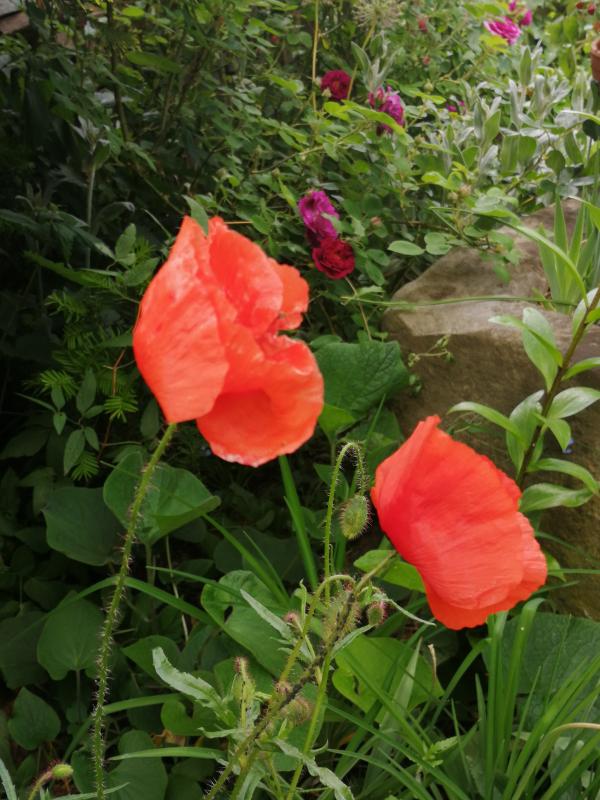 Guck mal genau in meinem Bild oben (Anklicken zum Vergrößern), links neben dem Mohn und den Schwertlilien (blühen halt noch nicht). ;)