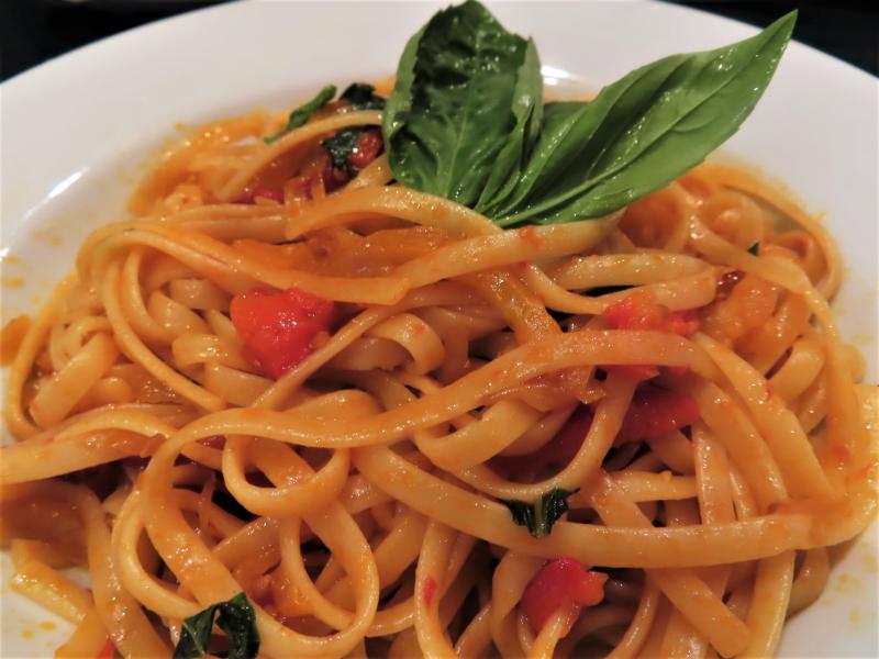 Hier gab es heute ein Lieblingspastarezept aus einem älteren italienischen Kochbuch :D : Linguine alla peperonata.