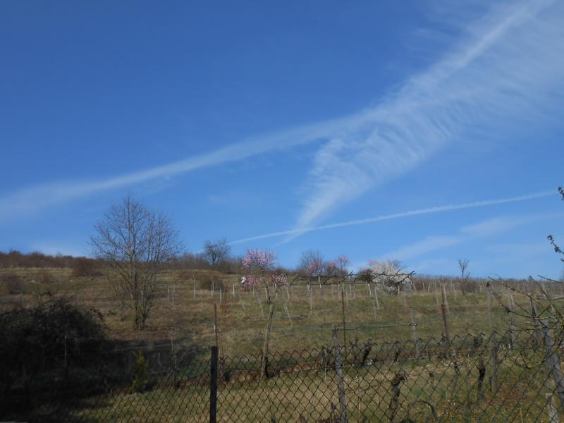 Gegenüber von unserem Haus blühen die ersten Bäume :D. Ich hoffe nur, dass es Flugzeugspuren nicht irgendwann von Kampfjets gibt :-\.