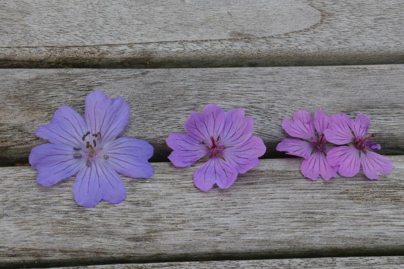 Geranium tuberosum hatte ich wegen der relativ spärlichen Blüte nie haben wollen, aber von den knollenbildenden Arten in meinem Garten hat G. libani die größten Blüten, die von malviflorum sind etwas, die von macrostylum deutlich kleiner.