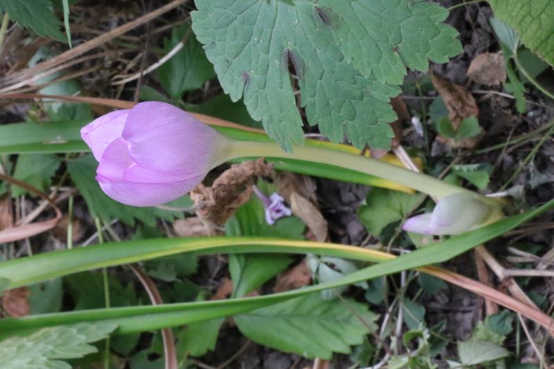 Die anhaltende Dürre ohne Aussicht auf Veränderung lässt den Garten immer deprimierender aussehen, zwei Herbstzeitlose haben sich nichtsdestotrotz durch den hartgebackenen Boden gekämpft: Colchicum bivonae ´Vesta´...