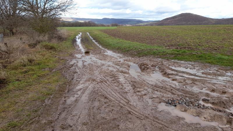Es gäbe Drainage, die in den Hang entwässern. Ja dann wundert ja auch nichts. Aber wer haftet, wenn der Weg ubd das angrenzende Feld mit abschmiert?