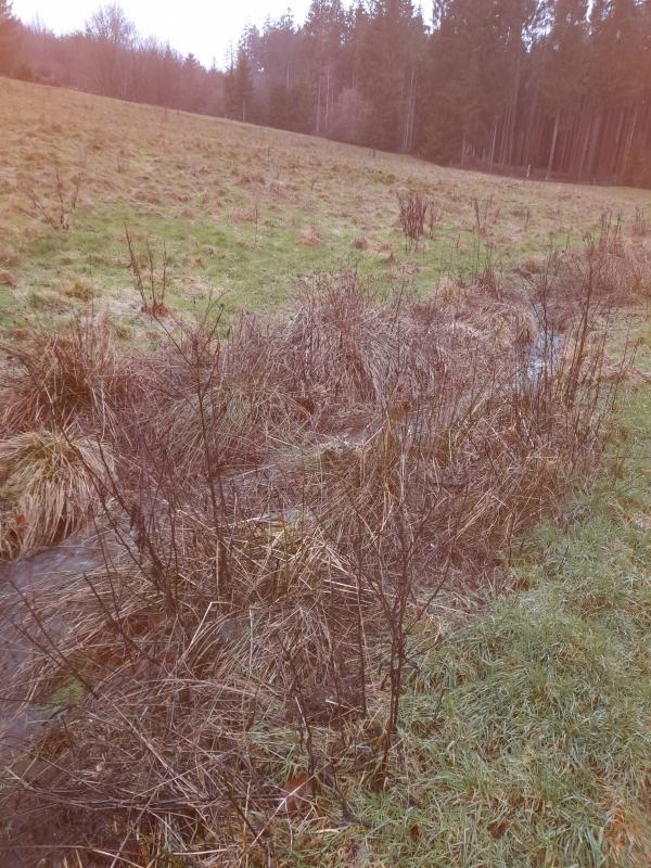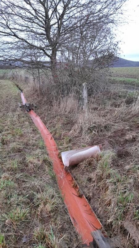 Die Verkopplung hat es gut gemeint und hat einen Stichgraben oberhab unseres Grundstück erstellt. Damit läuft jetzt alles Wasser ungebremst in den Bereich unseres Erdfalls. Ich habe Richtung Eigentümer getrommelt: Ich brauch dringend (!) eine Halbschale, die das Wasser aufnimmt und davon wegleitet. Ich habe auch schon einen Spender an der Hand. Der will das aber logischer Weise von der Steuer absetzen können.