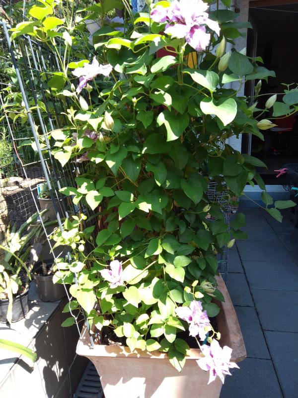Möchte mal meine Clematis zeigen. Steht nun 1,5 Jahr im Kübel und blüht und blüht und...