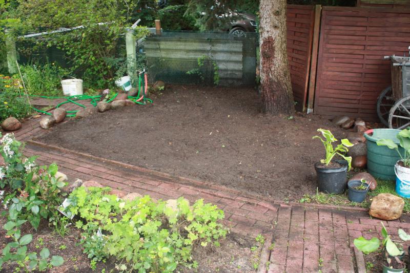 Ein Beet das aufgelassen wird nochmals von div. Wurzeln befreit. Bodenniveau begonnen auszugleichen.
