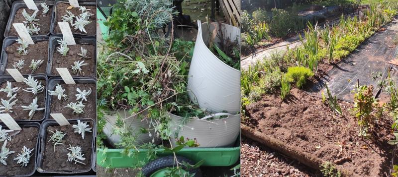 über das WE in einer Gewaltaktion etwas weniger als die Hälfte des Kleingartens gerodet, den wir aufgeben. Die Auflage war, alles an Bewuchs außer Bäume zu entfernen. mir ist das nicht ganz schlüssig, wollte aber nicht diskutieren. Esist in jedem Fall eine sehr deprimierende Aufgabe, einen voll blühenden Garten dem Erdboden gleich zu machen.