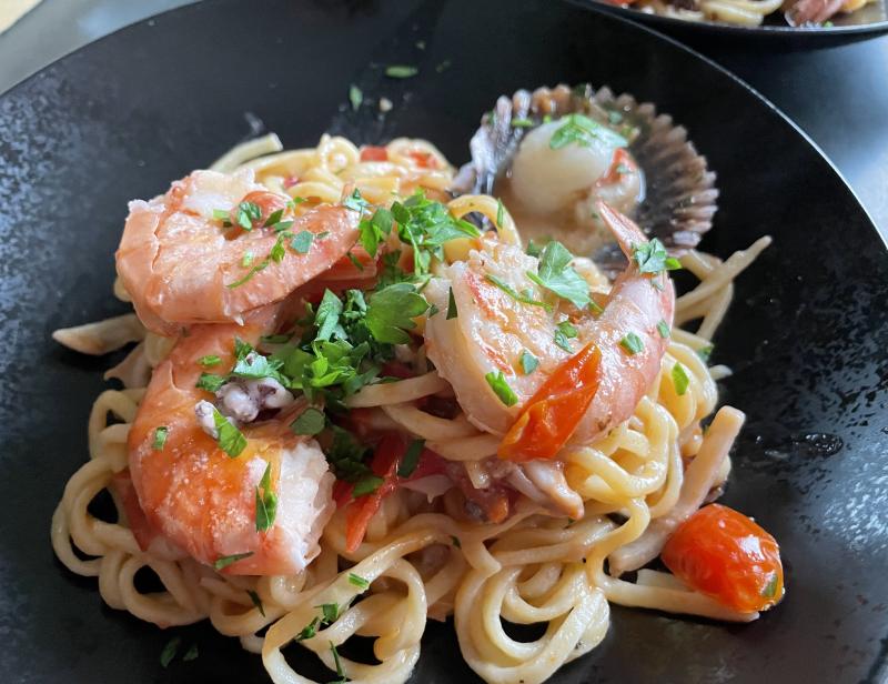 Gestern gab es Spaghetti frutti di mare. Das nächste mal nicht mit frisch gemachter Pasta, ansonsten sehr lecker! :D
