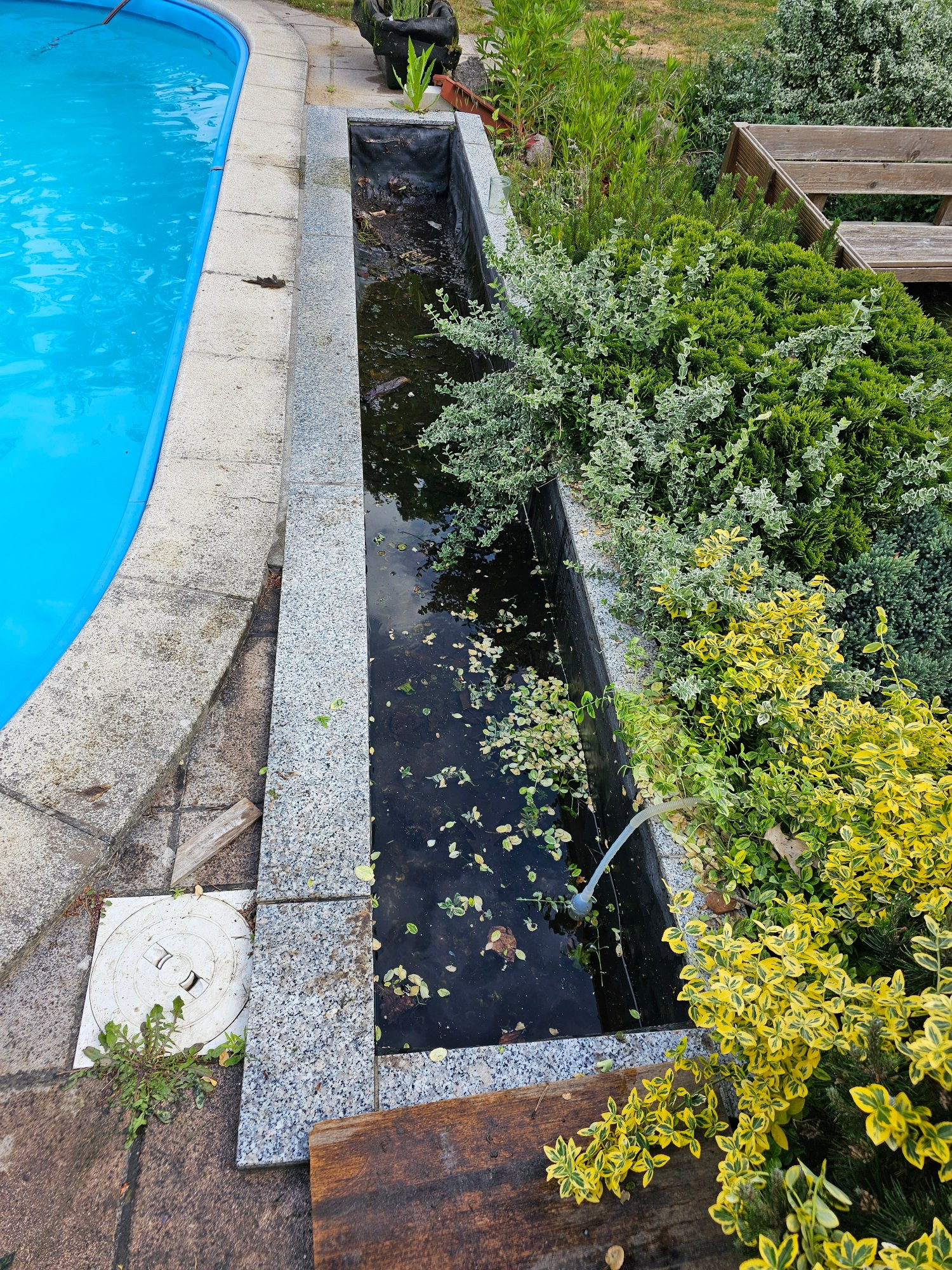 Aber jetzt habe ich ein Problem: der Teich ist nicht mehr dicht! Die Wasserhöhe ist nur noch die Hälfte.