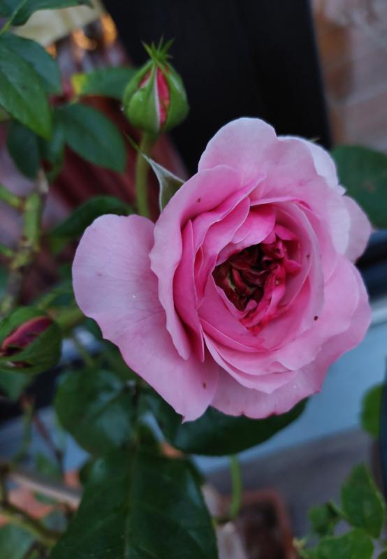 Eine meiner wenigen Rosen im Kübel, die nicht krank ist.