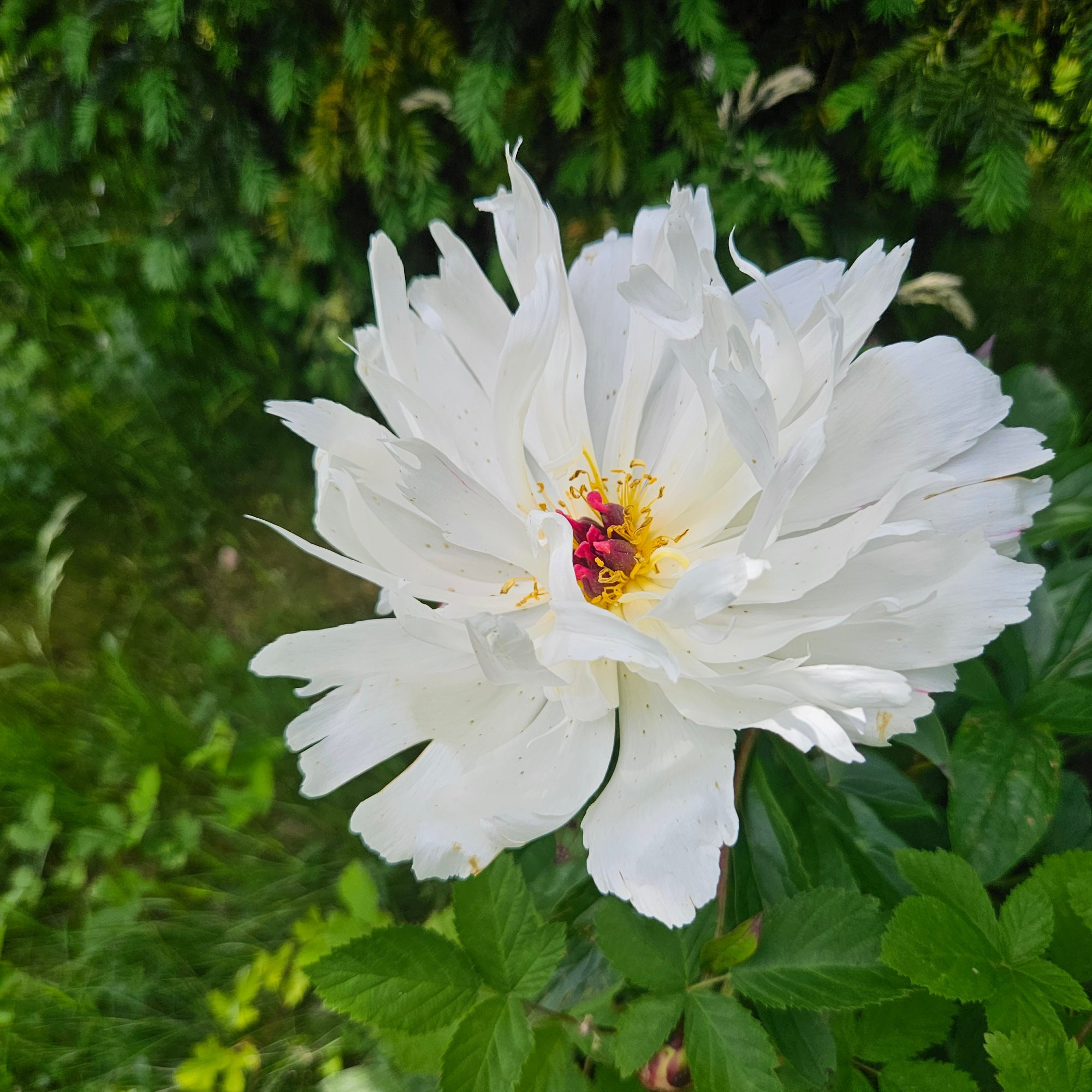 Hier gibt es ja fast ausschließlich Pfingstrosen vom Vorbesitzer, die meisten sehr gefüllt. Die kann ich nur durch Staudenstützen am Herumlungern hindern. Aber diese schöne Weiße steht hier auch. An Jan van Leeuwen hatte ich schon gedacht. Die steht hier leider höchstens halbschattig.