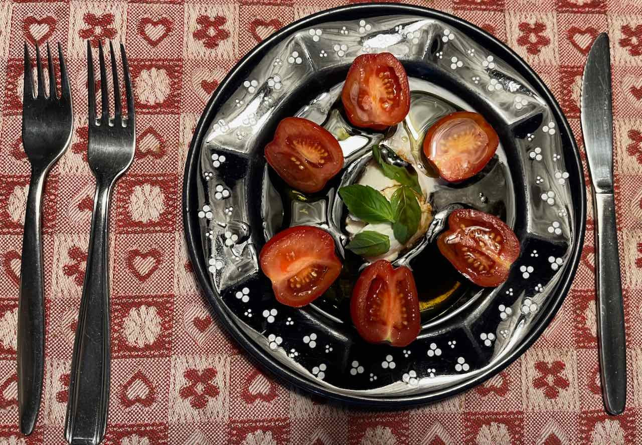 Vorspeise Insalata Caprese mit Büffel-Mozzarella aus Kampanien und Rispentomaten