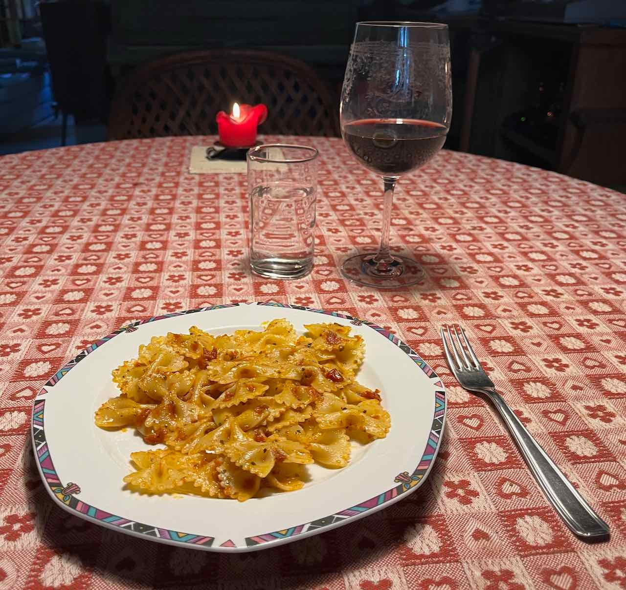 Hauptspeise Farfalle mit Pesto rustico zum Cabernet Sauvignon 2002 aus Mendoza, Argentinien