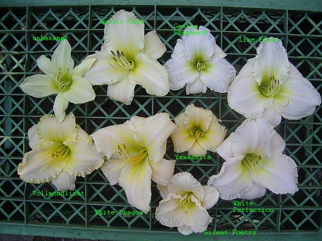 das sagt man von Gentle Shepherd. Dad's Best White ist auch bei Regen noch gut. Ich kann mich nicht beklagen, und dass sie eine wirre Frisur hat, wie ich schon bemerkte, das stört mich nicht, nein. Wie ein weißhaariger älterer Herr nach seinem Mittagsnickerchen. Ist doch lieb, oder?White Temptation habe ich viele Jahe gehabt und habe auch jetzt noch 2 Fächer behalten nach der Abgabe des Hostes. Dad's Best White , die ich mal als unerwünschte Ersatzpflanze bekam, habe ich wegen der unbefriedigenden Form alsbald wieder entsorgt.Da finde ich in der Kategorie Jever Eisbecher von Knöpnadel (nicht registriert) viel besser.Ein Problem bei diploiden fast Weißen ist häufig die sehr lappige Substanz.