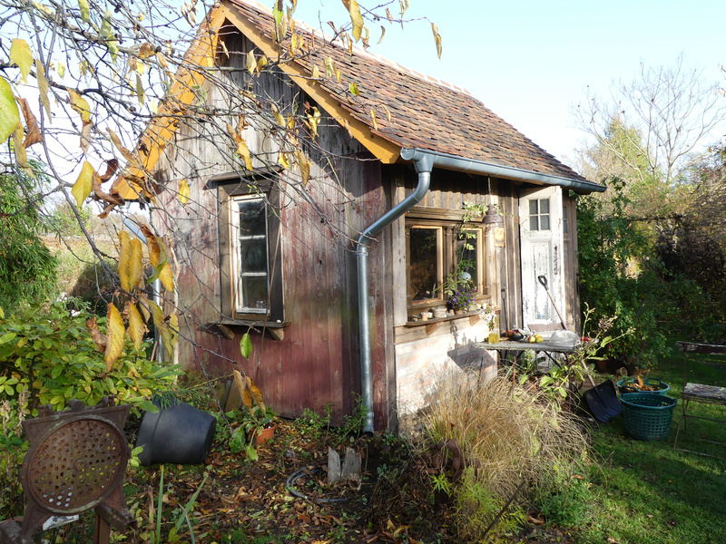 Ohne die Rose hat sich die Ansicht nun sehr verändert. Ans Häuschen kommt statt der 'Witzenhausen' ein weniger stark wüchsiger Rambler. An der vorderen Ecke werde ich nun versuchen, eine Franklinia zum Wachsen zu überreden. Wenn es gelingt, stelle ich mir ein aufgeastetes Exemplar vor.