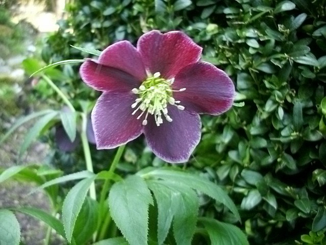 Voriges Jahr habe ich um Helleborus dumetorum viele Sämlinge entdeckt. In diesem Jahr hat einer davon geblüht.Laub von H.dumetorum, Blüte viel größer. Innen hellgrün wie die Mutterpflanze.