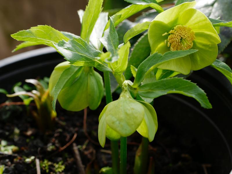 Neben 'Jennifers Liebling' blüht erstmals ein Sämling, der nicht annähernd so schön ist wie die Mutterpflanze. Er hat optisch mehr von x hybridus, was ok wäre, aber ich mag das verwaschene Rötlich-Grün nicht so sehr. Vermutlich ein Fall für den Kompost... ::)