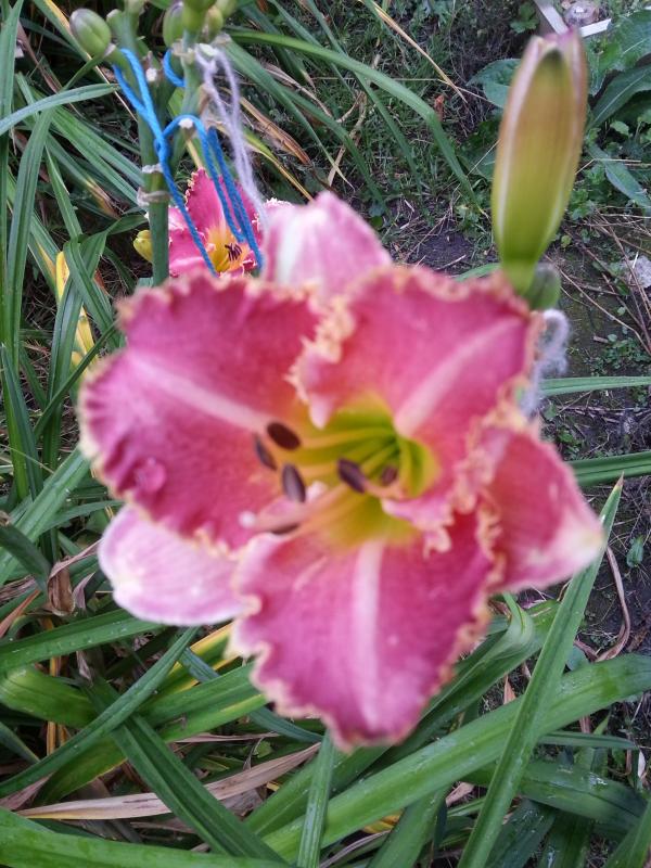 wo wir gerade bei den Berleyern waren:hier ein Abkömmling von Lola Branham, noch im Topf wegen Platzmangel, war im Lehmgarten aber sehr vielversprechend. Ich zeige ihn mal wegen des beeindruckend langen und dünnen Griffels, der diploiden Spufos eigen ist, weshalb viele von ihnen auch Samenkapseln nur schwer oder gar nicht ansetzen. Der Weg ist einfach zu lang. Manche Züchter schneiden deshalb auch ein Stück vom Griffel ab, um den Weg zu verkürzen.