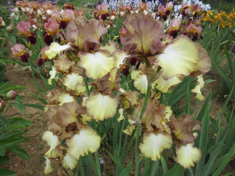 1187 kommt mir rein von den Wiki-Bildern her sehr nach Gracie Pfost vor, bei Chippendale scheinen mir die Schultern zu braun?! Vielleicht wenn die Blüten ältere wären, habe sie dummerweise schon abgeschnitten, war nur so ein Rhizom welches einen Stängel, aber sonst nicht mal richtiges Laub, geschweigen den erkennbare Seitentriebe zustande gebracht hat und wahrscheinlich erst in ein paar Jahren wieder blüht. Habe die Pflanze aus einer Quelle, bei der immer wieder schöne Iris für mich abfallen, leider in der Regel ohne jeglichen Namenshinweis@ Krokosmian 1187 könnte sein Gracie Pfost, aber eher noch Chippendale. ...1183 Glacier Gold, komm sie dir bekannt vor?